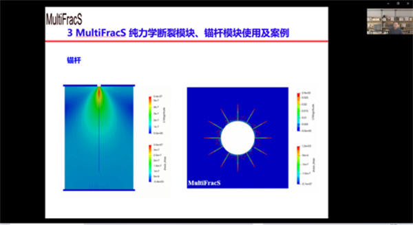 为期一天的培训授课人严成增教授向学员详细介绍了有限-离散元(FDEM)基本原理,MultiFracS 4.7版简介、前处理建模、后处理及使用流程,MultiFracS 纯力学断裂模块、锚杆模块使用及案例、MultiFracS渗流-断裂模块使用及案例、MultiFracS湿度-断裂模块使用及案例、MultiFracS热-断裂模块使用及案例、MultiFracS水-热-断裂模块使用及案例、MultiFracS化学-断裂模块使用及案例、MultiFracS二次开发及案例(含爆破数值模拟)。培训按照既定的流程,完成了各项培训内容,内容丰富,时间安排紧凑,达到了既定的培训目标。后续,MultiFracS开发团队将根据学员使用反馈快速迭代,不断发展完善MultiFracS软件的各项功能,助力科研和工程实践。 本场技术培训主要特色有:(1)前处理建模、求解、后处理全流程无死角详细讲解演示,极大降低用户使用门槛;(2)内容全面,包括FDEM基础理论介绍以及MultiFracS力学断裂、渗流、传热、化学、湿度等全部模块,同时还涵盖了二次开发,几乎囊括了MultiFracS的全部功能模块,内容十分丰富。当然由于内容很多,时间有限,学员实践互动环节有待继续加强。后续,MultiFracS开发团队将跟踪学员使用反馈,为用户使用MultiFracS提供持续帮助。