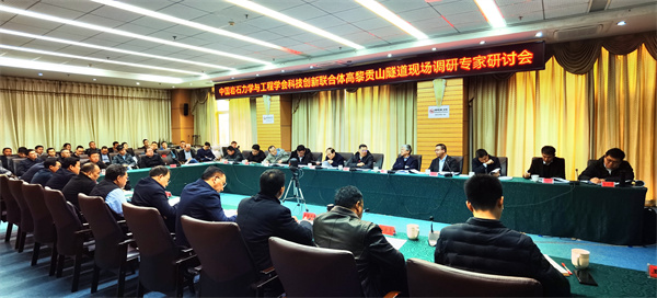 中国岩石力学与工程学会党委书记、理事长何满潮院士,学会党委副书记、山东大学校长李术才院士,学会理事长、东北大学校长冯夏庭院士,隧道全国重点实验室副主任、中山大学王复明院士,国铁集团鉴定中心正高级工程师唐国荣等院士、专家,云桂铁路云南公司副总经理曾云川,中铁二院副总工程师蒋良文、杨昌宇,中铁二院总监张宗军,中铁隧道局总工程师洪开荣,与来自中国岩石力学与工程学会、山东大学(济南)、隧道工程灾变防控与智能建养全国重点实验室(北京)、大瑞铁路项目部及所属各单位相关人员参加。活动由中国岩石力学与工程学会党委副书记、秘书长杨晓杰教授主持。 大瑞铁路是我国在建铁路长隧,起云南大理,经永平、保山、龙陵、芒市至中缅边境瑞丽。其中,全长 34.538 公里的高黎贡山隧道是穿越横断山脉的特长隧道,全隧穿越17套地层、19条断层(2条活动断裂、4条导热断裂)、2个向斜,断层破碎带、高地温、涌水量大、软岩大变形及大规模高压富水砂化泥化蚀变带等不良地质极为突出,且不良地质段落长、变化快、致灾强,常规隧道采取的超前预报方法和标准已无法有效指导高黎贡山隧道特殊复杂不良地质施工,严重影响了高黎贡山隧道建设的进展,2015年12月底开工以来,尽管克服了重重困难,但隧道施工任务也只完成50.3%。