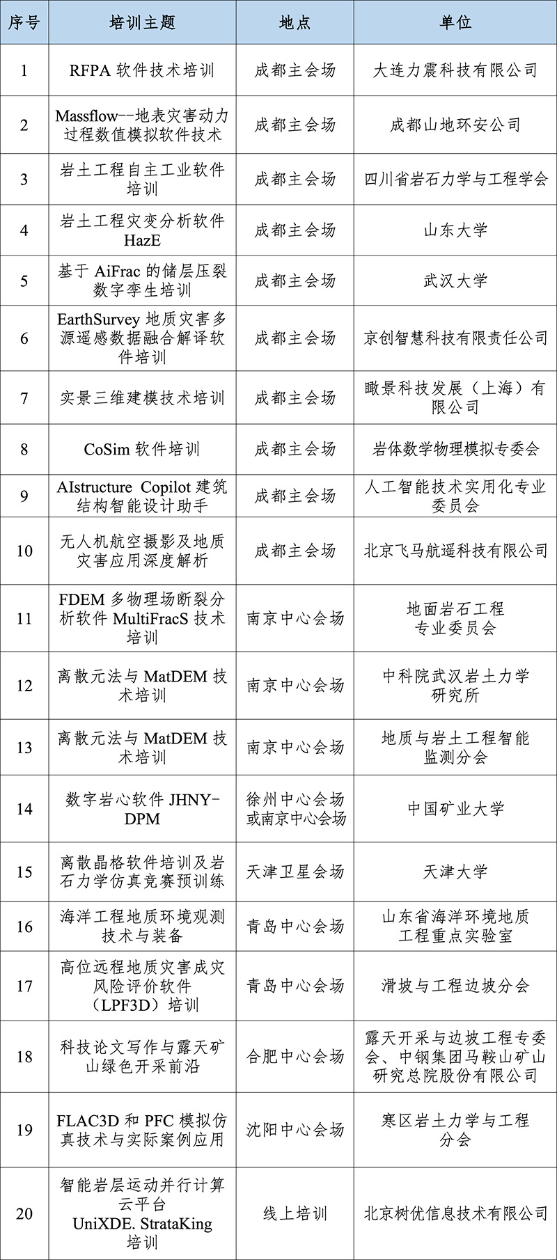 中国岩石力学与工程学会各分支机构、省级学会