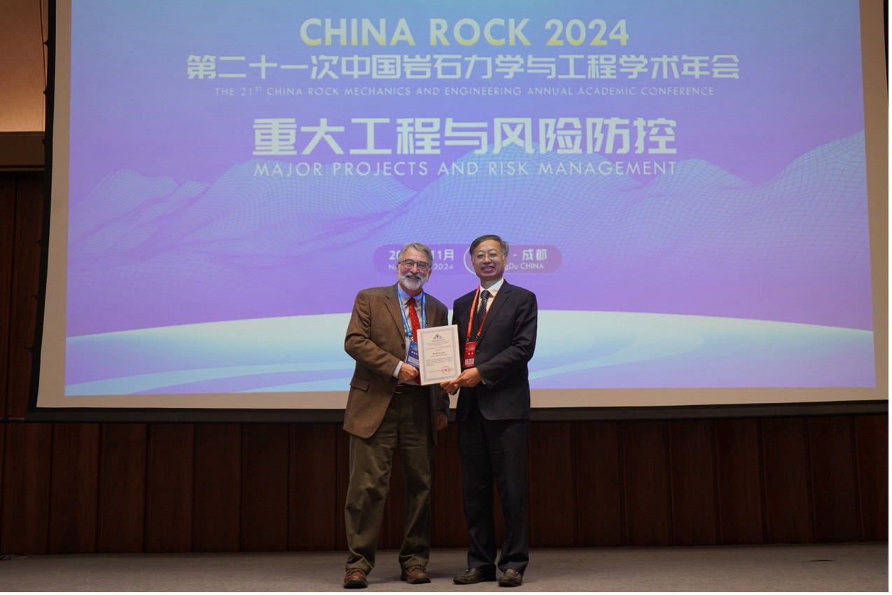 中国岩石力学与工程学会“3+1”领导班子成员、中国工程院院士潘一山受学会党委委托出席会议并致辞。他首先对全球各地嘉宾的到来表示热烈欢迎,并高度评价了青年科技工作者在岩石力学领域的重要作用。潘院士强调,青年是科技创新的生力军,应主动承担起将理论研究应用于工程实践的重任,勇于探索、敢于实践。他鼓励青年科技工作者在重大工程中积极发挥聪明才智,敢想敢做、稳扎稳打,为推动新质生产力发展贡献力量。 国际岩石力学与岩石工程学会(ISRM)副主席 Ki-Bok Min、Milorad Jovanovski,前ISRM副主席杨强,日本工程院院士陈光齐,2004年ISRM罗恰奖获得者、加拿大多伦多大学Giovanni Grasselli教授,加州大学伯克利分校Steven D. Glaser教授,美国Itasca公司高级地质力学工程师David Potyondy,ISRM中国国家小组副主席赵志宏等应邀出席。论坛由ISRM副主席、ISRM教育基金会(EFC)主席张丰收教授主持。