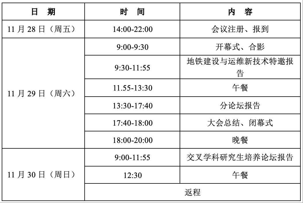 本届会议邀请在地铁建设与运维、地下空间开发与利用、隧道工程灾害与防治等领域的研发、设计、施工及教育领域的国内外知名专家、学者,以及来自国内外地铁公司、科研院所、施工单位和设备生产厂家的专业人士参加。旨在通过深入的学术交流和经验探讨,为地下交通工程的智能建造、灾害防控与健康运维提供策略、方案与相关经验,并为青年学者提供一个新理念、新技术、新成果的创新交流平台。一同努力,使我国地下交通工程建设更加智能、安全、绿色、高效!