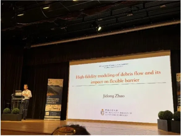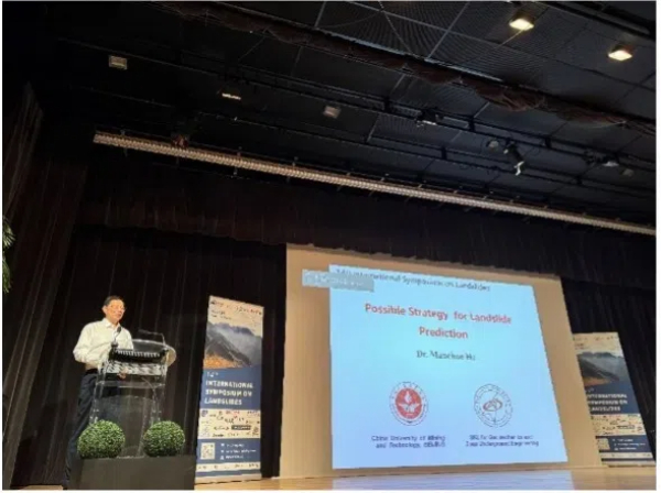 此次国际滑坡论坛共有9个特邀报告。其中,中国有两位专家作了报告。何满潮院士的报告在闭幕上进行,报告题目为“Possible Strategy for Landslide Prediction”。该围绕滑坡加固和智能监测预警这一科学难题,自主研发了适用于滑坡大变形防控的NPR锚索系统,构建了基于NPR锚索、智能传感器和物联网的滑坡综合监测预警系统,实现了滑坡全寿命周期的加固和监测预警协同。香港科技大学赵吉东教授作了题为“High-fidelity Modeling of Debris Flow and its Impact on Flexible Barrier”的特邀学术报告。报告后,国外专家与中国专家学者就地震滑坡、泥石流、高速滑坡动力学等研究成果学术交流。