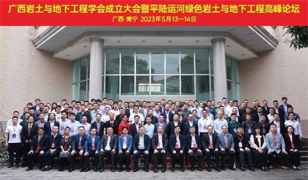 2023年5月14日,广西岩土与地下工程学会成立大会暨平陆运河绿色岩土与地下工程高峰论坛在广西大学召开。中国科学院院士、浙江大学陈云敏教授,广西壮族自治区科学技术协会朱其东副主席,国际土力学及岩土工程学会前主席、香港工程科学院院士、英国皇家工程院院士、香港科技大学吴宏伟教授,中国岩石力学与工程学会副理事长、西南交通大学何川副校长,广西大学马少健副校长出席成立大会并致辞。据悉,来自全国50多家单位的200余名专家代表参加本次成立大会和论坛。