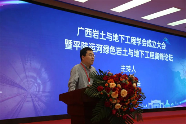 广西岩土与地下工程学会由广西壮族自治区内岩土与地下工程相关科技工作者、热心于岩土与地下工程领域研究的各界人士、相关企事业单位和社会团体自愿组成的学术性、公益性、非营利性社会组织,是岩土与地下工程研究工作者开展学术和科技交流的桥梁和纽带,是推动广西岩土与地下工程发展的重要社会力量。学会由广西壮族自治区科学技术协会主管,广西大学作为支持单位。成立大会后还举办了平陆运河绿色岩土与地下工程高峰论坛。16位来自全国岩土和地下工程领域的知名专家做学术报告,针对世纪工程平陆运河低影响开发和生态修复,以全新视角,开放的姿态,围绕绿色岩土与地下工程关键问题和核心技术发表各自的学术观点,并与会员代表展开充分的交流研讨,为平陆运河的建设和发展积极建言献策。论坛开幕式由广西大学土木建筑工程学院院长安永辉主持。