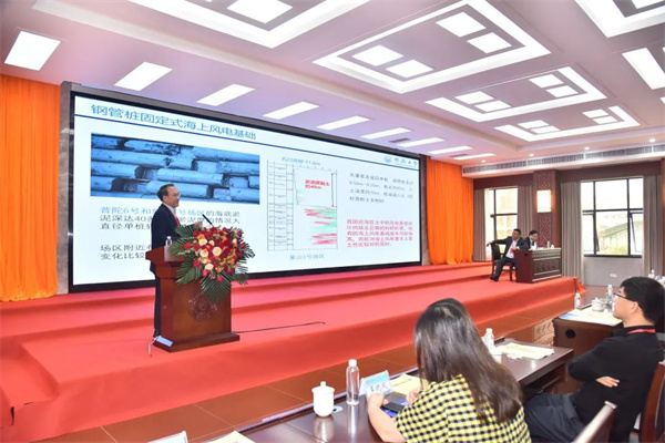 同济大学黄茂松教授作了题为“软土海床中风机钢管桩受荷性能的全寿命演化评价方法”的报告,分析了基于虚拟加载上限方法的拟三维桩侧p-y曲线、基于小应变模型的三维桩侧p-y曲线、黏土中水平循环受荷桩p-y曲线和黏土中带翼大直径桩的p-y曲线,并以此为基础建立了软土海床中风机钢管桩受荷性能的全寿命演化评价方法。