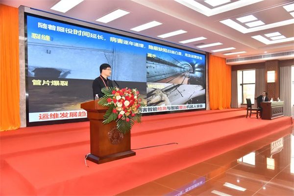 山东大学李利平教授作了题为“地下工程智能建养高端装备与机器人实用技术”的报告,指出在国家战略和地下工程建设内在需求的要求下,重大基础设施建设逐步由机械化向数字化、智能化发展,详细介绍了智能勘察测量机器人、隧道施工质量监测机器人、凿岩-装药装备、盾构搭载地层界面识别装备等智能建造机器人装备和高端装备。