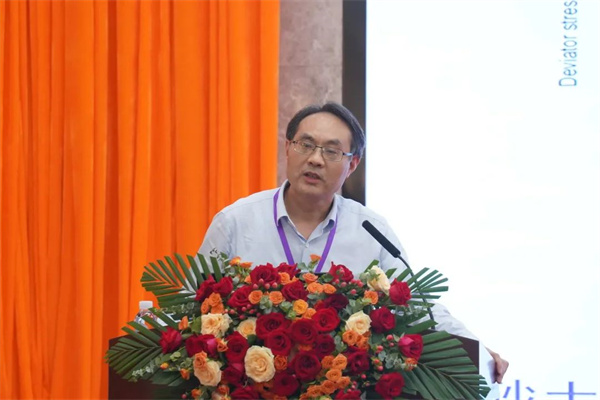 国际土力学及岩土工程学会前主席、香港工程科学院院士、英国皇家工程院院士、香港科技大学吴宏伟教授作了题为“状态相关非饱和土力学理论:生态岩土学与工程的发展”的报告,分析了状态相关的非饱和土的弹塑性本构关系和柔度矩阵的所有耦合参量的确定方法,并介绍了状态相关的非饱和土力学理论体系在生态岩土工程方面的应用成果。