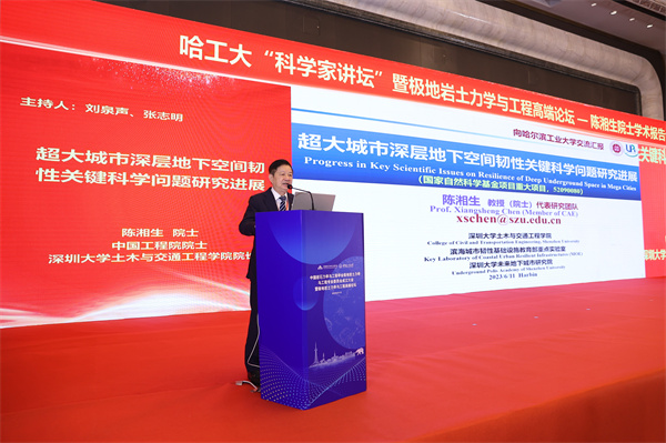 随后,专委会特邀陈湘生院士、林君院士、中铁西北科学研究院有限公司张鲁新教授、中国科学院大学柴育成教授、中国科学院西北生态环境资源研究院马巍研究员、中国地质科学院地质力学所裴军令研究员和北京建筑大学齐吉琳教授做客哈工大"科学家"讲坛,并做学术报告。