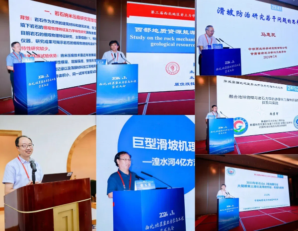 唐春安教授在致辞时表示,希望与会代表围绕西北地区拥有独特的地质条件和复杂的岩土环境,如滑坡高边坡、地震次生灾害、丝绸之路岩土文物保护、冻土及冻融、黄土、沙漠土、盐渍土等关键和前沿问题,深入探讨、集思广益,深挖多学科交叉的真正内涵,增进开放、信任、合作,为西部岩石力学工程发展注入强劲动能,共创美好未来。 本次大会以“汇聚岩土工程智慧 赋能西部绿色发展”为主题,设一个主会场和五个分会场,安排特邀报告、专题报告100余个。中国地震局兰州地震研究所王兰民研究员、中国铁道科学研究院集团有限公司张玉芳研究员、大连理工大学唐春安教授,西安理工大学党发宁教授,太原科技大学梁卫国教授,中国科学院地质与地球物理研究所尚彦军研究员等专家作了特邀报告,内容涉及岩土工程领域的最新发展方向及行业前沿动态。本次学术会议的召开为广大岩土力学与工程领域的同仁提供一个交流思想、分享成果、探讨前沿问题的广阔平台,将对引领学科发展、推动行业进步发挥积极作用。