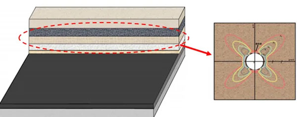何院士用三张图讲解了三个效应的补偿机制,即径向应力不为零,岩石强度由二维变成三维,浅部岩石由单轴变为三轴的强度,调动深部岩石,与浅部的岩石共同连接,以保护整个隧道的安全。对于第三个效应,使切向应力集中程度降低。如此便实现了开挖的补偿。