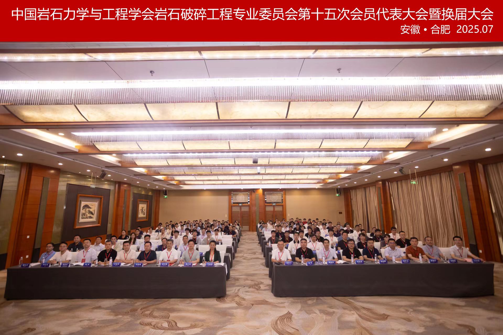 2025年7月26日,中国岩石力学与工程学会岩石破碎工程专业委员会第十五次会员代表大会暨换届大会在安徽合肥召开。受中国岩石力学与工程学会党委书记、理事长何满潮院士委托,学会监事李萍丰教高、常务副秘书长牛晶蕊副研究员出席会议。来自岩石破碎工程领域的相关高校、科研院所、工程企业等单位的会员代表200余人参加会议。