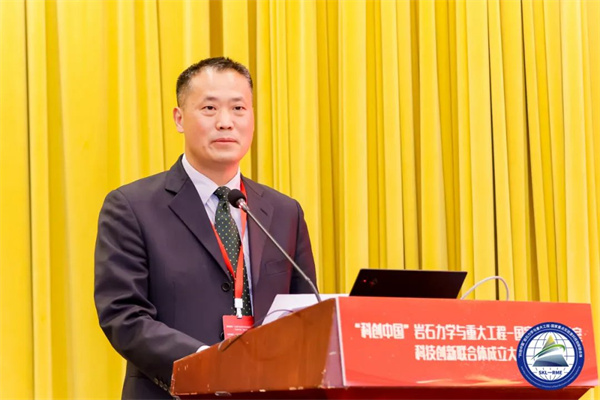 中国岩石力学与工程学会党委书记、理事长何满潮院士代表联合体发起单位为大会致欢迎词,并做题为《科技创新联合体的使命》的主旨报告。