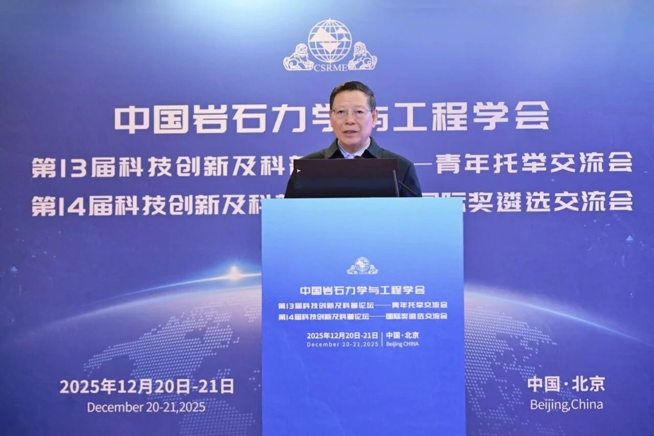 2025年12月21日,中国岩石力学与工程学会第14届科技创新及科普论坛——国际奖遴选科技创新成果交流会在北京举行。学会党委书记、理事长何满潮院士出席会议并致辞,强调在当今世界科技格局重构与范式转移的关键时期,我国应充分发挥重大工程建设的实践优势,推动理论创新与国际学术贡献。