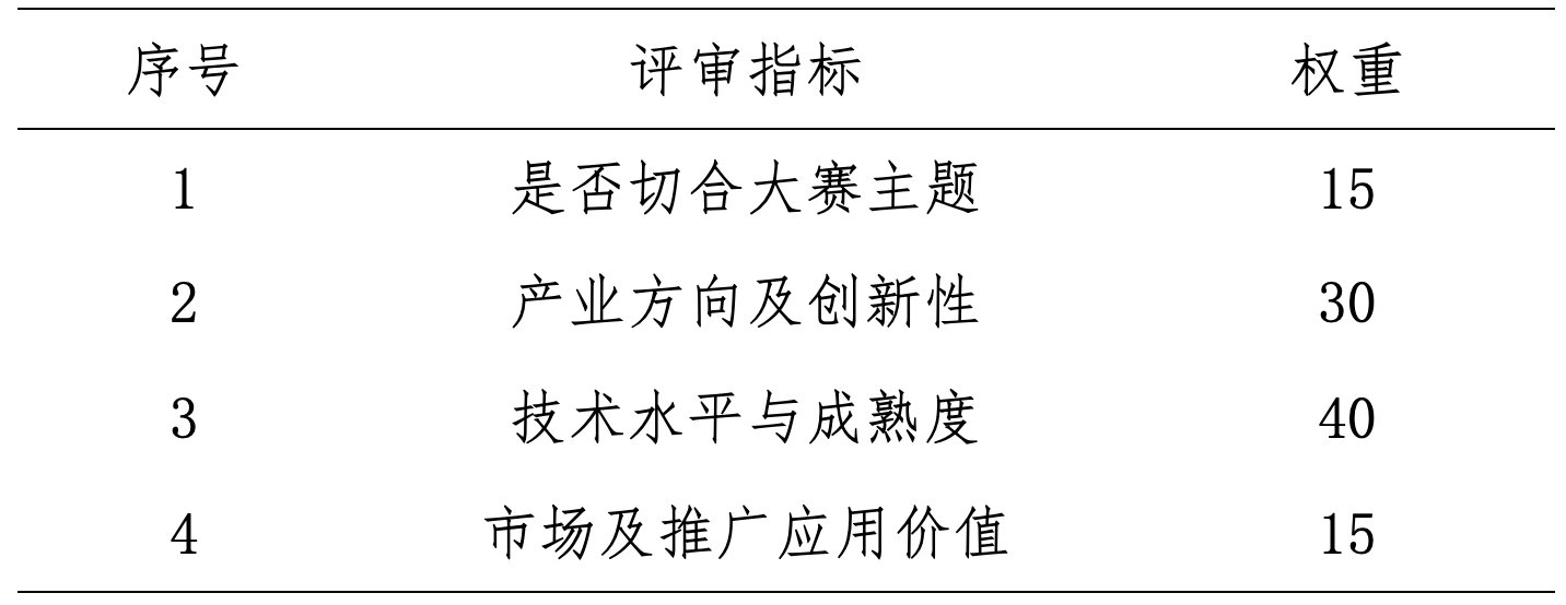 初赛评审采取通讯评审方式,评审委员会由业内学者和企业家组成,评审指标如下表所示 (二)决赛评审