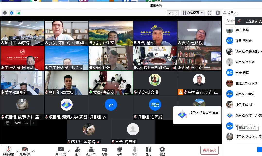 2022年5月27日,由中国岩石力学与工程学会以线上会议形式组织召开了"大型错动带工程特性与安全控制技术"科技成果评价会。