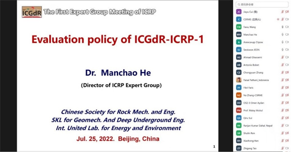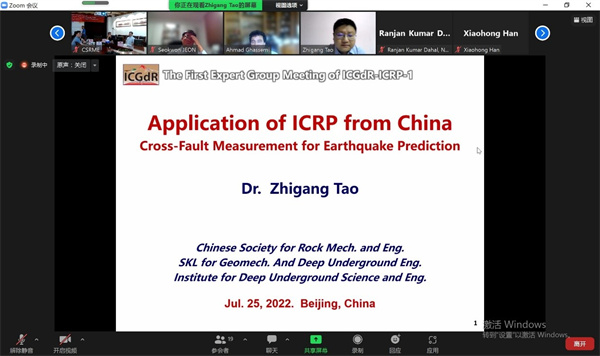 On the evening of July 25, 2022 (CST), the International Consortium on Geo-disaster Reduction (ICGdR) held the first online expert group meeting of the International Correlation Research Program on "Cross-fault Measurement for Earthquake Prediction". 21 experts from 8 countries around the world attended the meeting, including Prof. Manchao He, the Director of the expert group; Prof. Fawu Wang, the ICGdR President and Deputy Director of the expert group; Professor Zhigang Tao, the secretary-general of the expert group; Prof. Antonio Bobet and Prof. Ahmad Ghassemi from USA, Professor Teuku Faisal Fathani and Dr. Fikri Faris from Indonesia; Professor Ranjan Kumar Dahal from Nepal; Dr. Alexander Strom from Russia; Prof. Omer Aydan from Japan; Prof. Seokwon Jeon from South Korea; Prof. Malay Mukul from India, and Prof. Xiwei Xu from China.