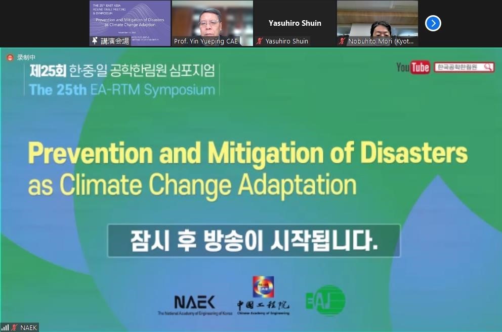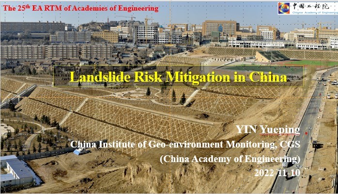 On November 10, 2022, the 25th East Asia Round Table Meeting of Academies of Engineering (EA-RTM) was held online, with the theme of " Prevention and Mitigation of Disasters as Climate Change Adaptation". There were three topics for discussion: " Flood Forecasting for River Basins and Flood Control Frontiers", "Frontiers of Landslide Disaster Prediction and Damage Reduction Measures " and "Other Advanced Measures for Prediction and Mitigation of Water Disasters". Researcher Yueping Yin, vice president of the CSRME, was invited to give an academic report entitled "Research on China's Landslide Mitigation Strategy", introducing the disaster-causing mechanism of geological disasters in China's hills and mountains, the Loess Plateau, Southwest karst mountains and the Qinghai-Tibet Plateau, and the results of early identification, monitoring and early warning and risk control of geological disasters in the Three Gorges Reservoir area, and expressed his views on risk mitigation and monitoring and early warning during the period of discussion.